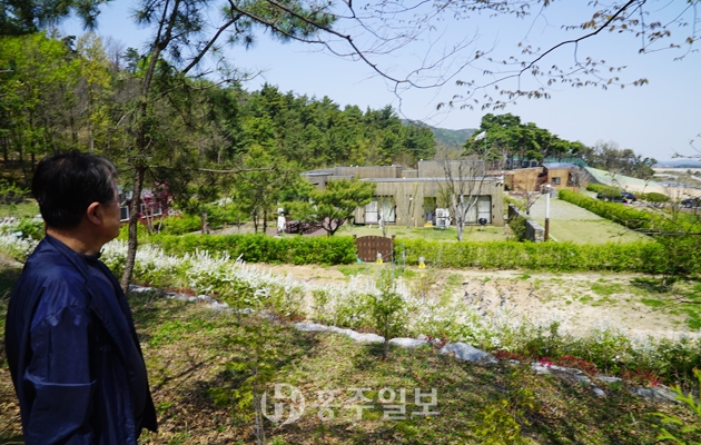 닫혀진 관사정문 집안 쪽에 있던 관사 관리인과의 면담을 통해 당초 이 관사 터는 유명지관이 자리 잡았으며, 묘 터는 정문 뒤쪽 편 산자락에 묘가 있음을 확인해 줬다.