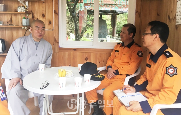 홍성소방서(서장 채수철)는 지난 2일 정암사(광천읍 담산리)를 방문, 석가탄신일을 앞두고 전통사찰의 소방안전관리 현황을 확인하고 만일을 대비한 화재 방지대책을 논의하는 등 현장행정을 펼쳤다고 밝혔다. 저작권자 © 홍주일보 무단전재 및 재배포 금지 홍주일보 다른기사 보기 페이스북 카카오톡 URL복사 기사공유하기
