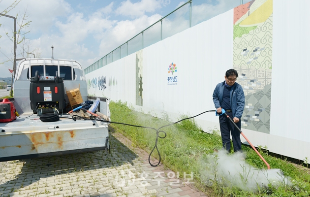 군이 잡풀 제거를 위해 스팀장치를 활용한 친환경제초작업을 실시하고 있다. 도심 주요 도로변 및 인도 가로수 주변에 마구잡이로 자라난 잡초가 도시미관을 크게 해칠 뿐만 아니라 보행자들에게도 방해가 되며, 해충 발생, 각종 생활쓰레기 투기를 유발하는 등 주민 생활에 큰 불편을 야기하고 있다.