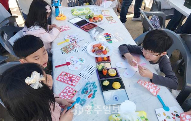 청운대학교 산학협력단에서 위탁·운영하는 홍성군 어린이급식관리지원센터(센터장 전예숙)는 지난 5일 홍성군 주최로 진행한 ‘제96회 어린이날 기념행사’에서 야채·과일 도장 부채 만들기 체험부스를 운영했다.<사진>
