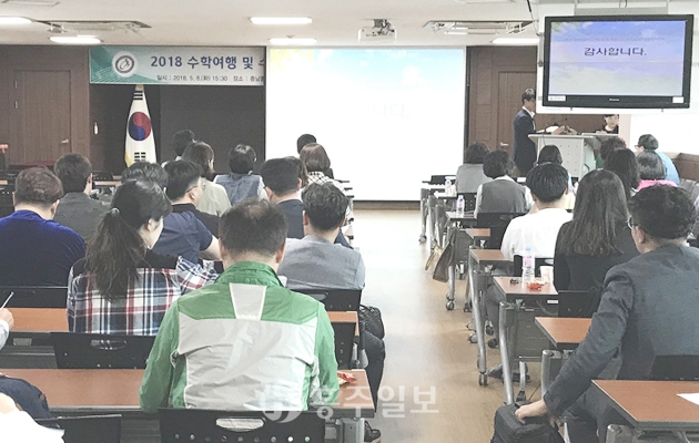 홍성교육지원청(교육장 우길동)은 8일 천안서당초교 이수희 교사를 강사로 초청, 학교 수학여행 및 계약업무 담당자 70여 명을 대상으로 ‘2018 수학여행 매뉴얼 및 청렴연수’를 실시해 각종 현장체험학습 관련 반부패·청렴 의식을 제고하는 기회가 됐다. 저작권자 © 홍주일보 무단전재 및 재배포 금지 홍주일보 다른기사 보기 페이스북 카카오톡 URL복사 기사공유하기