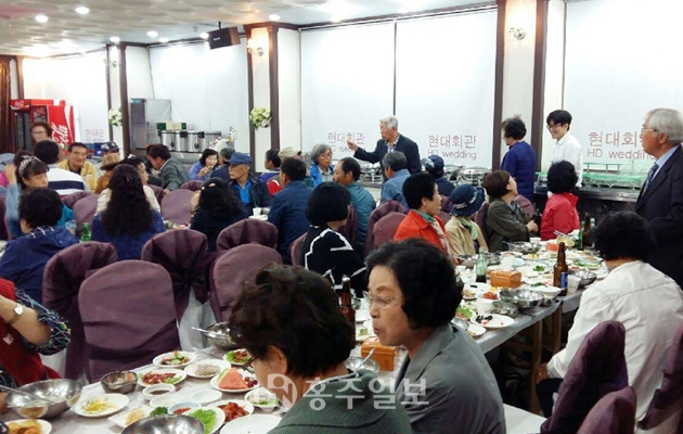 큰사위인 안호진 씨의 진행으로 시작된 피로연에서 요즘 크게 유행하고 있는 부모에 대한 감사로 ‘낳아주시고 길러주시어’ 감사의 글이 담긴 감사패 전달식이 있어 보는 이들에게 진한 감동을 주기도 했다. 이 날 참석한 100여 명은 산수연을 맞은 조 회원의 만수무강을 박수로 기원했다.