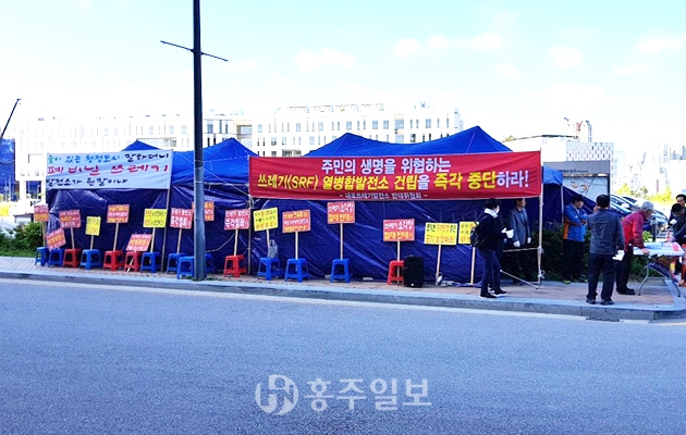 내포신도시쓰레기발전소 반대위원회가 지난 21일부터 산업자원부 앞에서 천막농성에 돌입했다. 행정심판위원회가 산업통상자원부에 내포신도시 열병합발전소의 승인불승인을 결정하라는 행정심판의 결과에 따라 이후 내포신도시 열병합발전소의 향배가 산업통상자원부의 결정에 의해 좌우하게 됐다.