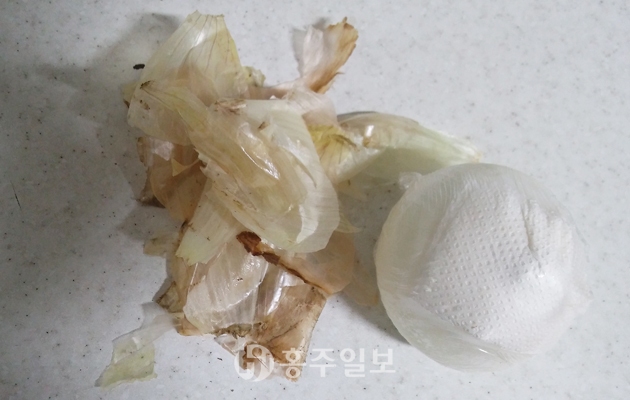 양파의 껍질을 한 겹 벗겨내고 심지에 키친타올을 올려 마르지 않게 한 뒤 랩으로 하나하나씩 싸준다. 랩으로 싼 양파는 비닐봉지나 통에 담아 냉장보관하면 무르지 않게 오래 먹을 수 있다. 또한 양파 껍질에도 영양분이 풍부해 껍질을 제거한 뒤 식초물에 담갔다가 차로 마시면 좋다.