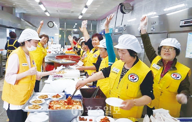 대한적십자 홍성지구협의회(회장대행 윤일순)는 지난 18일 ‘제71회 세계 적십자의 날’을 맞이해 어버이 큰잔치 행사를 11개 읍·면 봉사회와 기타 5개 봉사회 등 150여 명의 지역 어르신을 모시고 식사를 대접했다.