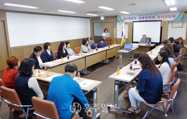 대한노인회 홍성군지회(지회장 조화원) 경로당프로그램관리부에서는 2018년 상반기 강사간담회를 실시했다. 이번 간담회를 통해 양질의 프로그램을 보급해 경로당 회원들이 건강하고 행복한 노년기를 보내실 수 있도록 최선을 다할 것을 당부했다. 저작권자 © 홍주일보 무단전재 및 재배포 금지 홍주일보 다른기사 보기 페이스북 카카오톡 URL복사 기사공유하기