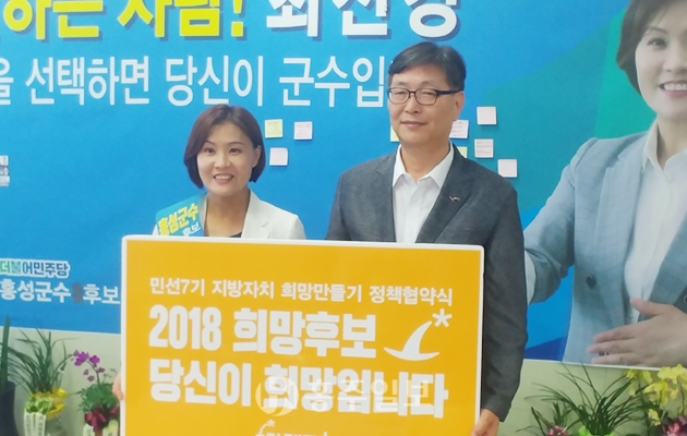 더불어민주당 최선경 홍성군수 후보는 지난 3일 시민사회 싱크탱크인 (재)희망제작소(소장 김제선)와 홍성지역 희망 만들기 정책협약을 체결했다.