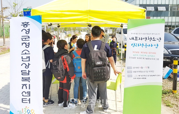 홍성군청소년상담복지센터는 청소년 및 부모를 대상으로 개인상담, 전화상담, 심리검사를 실시하고 있으며, 각급 학교와 유관기관 연계사업으로 또래상담, 학교폭력예방교육, 인지행동치료, 품성계발 프로그램을 진행하고 있다. 올해는 새롭게 내포지역청소년심리적응사업을 진행하고 있어 지역주민에게 큰 호응을 받고 있다. 거리 상담을 하는 ‘내포근한 만남’, 심리극을 통한 심리치료 ‘내포근한 심리놀이’, 학부모를 위한 ‘내포근한 세상’, 위기청소년 심리검사 ‘내포근한 내맘’, 지역청소년 단체지원‘내포근한 열정’으로 찾아가는 상담을 실시하고 있다.