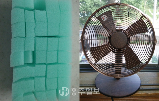 이럴 때 간단한 방법이 있다. 일반 스폰지를 격자 모양으로 칼집을 내서 망을 청소하면 망에 붙은 먼지를 쉽게 제거할 수 있다. 스폰지에 물을 묻혀 선풍기망을 닦아내고 세제로 한 번 더 닦으면 된다.