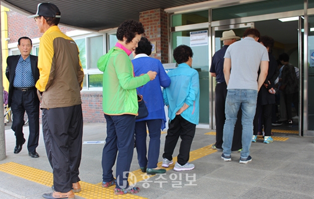 투표장에 들어가기 위해 주민들이 긴 줄을 섰다. 하지만 군의 지방선거 투표율은 60.8%로 저조한 투표율을 보였다. 저작권자 © 홍주일보 무단전재 및 재배포 금지 김옥선 기자 다른기사 보기 페이스북 카카오톡 URL복사 기사공유하기