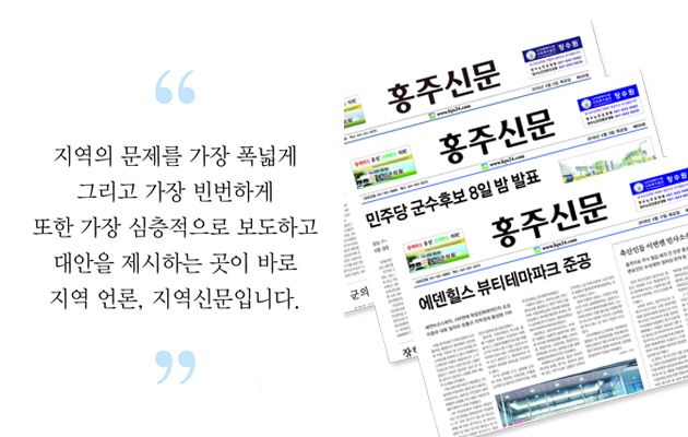 군민 여러분과 출향인 여러분, 그리고 애독자 여러분이 주시는 정성스런 힘이 보태져야 정론직필과 한 눈 팔지 않는 언론으로 성장하고, 권력에 굴하지 않는 홍주일보 홍주신문의 자양분이 되고 밑거름이 됩니다. 그래서 홍주일보 홍주신문이 동네신문으로서의 가치 창조를 실현하겠습니다. 사람냄새 나는 지역신문, 행복과 희망이 담긴 지역신문, 창의적인 지역신문을 만들겠습니다. 동네 구석구석의 미담사례를 발굴하고 충남도청시대 군민들에게 유익한 정보와 미래비전을 제시하며, 애향심을 고취시키기 위해 굴절되지 않은 시각으로 지역의 문제점과 희망적 대안을 제시하겠습니다. 이를 실천하기 위해 군민 여러분과 출향인 여러분, 그리고 변함없이 구독과 광고협찬으로 힘을 보태주시는 애독자 여러분들에게 언제나 열려 있는 지면을 활짝 개방하겠습니다. 앞으로 홍주일보 홍주신문에 대한 변함없는 관심과 성원, 깊은 사랑과 애정에 진심으로 감사의 인사를 전해 올립니다. 고맙고 감사합니다.
