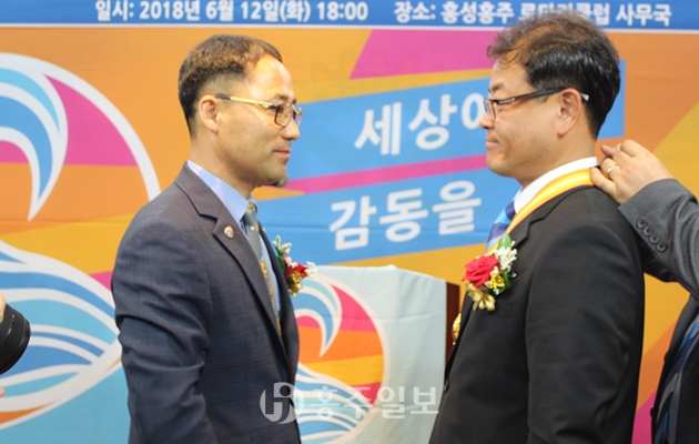 국제로타리 3620지구 홍성홍주 로타리클럽 회장·임원 이·취임식이 지난 12일 로타리클럽 사무국에서 열렸다.<사진>