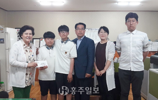 홍주중학교(교장 이계엽) 방과 후 바리스타 동아리 학생들이 지난달 29일 광천 사랑샘에 수익금을 기부했다.<사진>
