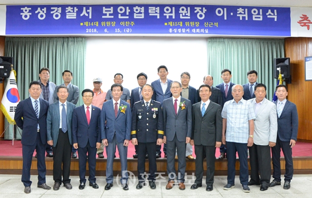 홍성경찰서(서장 맹훈재)는 지난 15일 경찰서 대강당에서 서장, 보안협력위원회 위원 등 60여명이 참석한 가운데 보안협력위원회 위원장 이·취임식 행사를 개최했다.<사진>