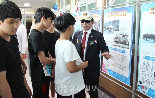 무공수훈자회 최종수 홍성군지회장은 “이번 전시회는 학생들에게 6·25를 상기시켜 전쟁의 참상이 얼마나 비참한지 보여주고 안보의 중요성을 홍보하기 위한 목적으로 열게 됐다”며 올해 행사를 위해 협조해준 홍남초교와 홍성중학교 측에 감사의 뜻을 전했다.