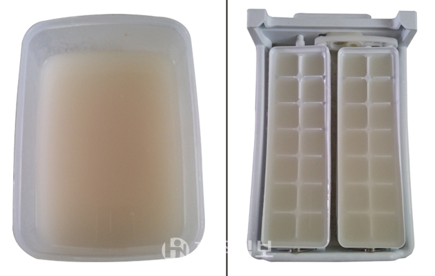 오늘은 지난 겨울 한동안 사용하지 않았던 아이스트레이를 청소해보자. 재료는 간단하다. 쌀뜨물만 준비하면 된다. 아이스트레이에 쌀뜨물을 가득 채운 뒤 잠시 놔둔다. 깨끗한 물로 헹구어 내고 식초물로 한 번 더 헹궈주면 깨끗해진다.