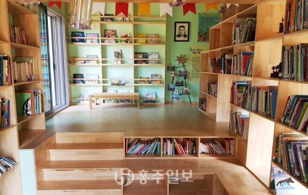 홍동면에 어린이도서관 두밀리책방이 지난 18일 준공식을 가지고 어린이들을 찾아갈 예정이다.<사진> 홍동면 밝맑도서관 내에 있던 3평 남짓한 어린이 공간이 장소가 좁아 책을 읽고 놀기에 부족함에 충북대학교 건축연구회 및 밝맑도서관과 갓골어린이집의 후원으로 문을 열게 됐다.