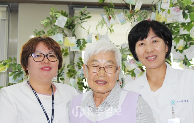 호스피스 병동에 오히려 보호를 받아야 할 것만 같은 하얀 백발의 자원봉사자가 있다. 모종금(83)씨가 그 주인공이다. 지난 2009년 보건소를 퇴직하고 호스피스 병동 교육을 받은 뒤로부터 하루도 빠짐없이 봉사를 하고 있다. “늘 힘이 닿는 한 봉사 활동을 하겠다는 마음은 젊어서부터 가지고 있었다. 퇴직을 하고 내가 하고 싶은 일을 하는 것뿐이다.”