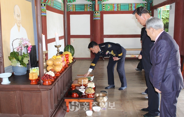 만해 한용운 선생 제74주기 추모다례제가 지난 22일 결성면 성곡리 만해생가지 일원에서 개최됐다.<사진> 이번 다례제는 1부 한풀이와 기원의 의미를 담은 남도화 씨의 살풀이춤을 시작으로 한국불교 법륜종 총무원장 법공 우호 스님, 논산 지장정사 원로회장 덕산 큰스님, 홍성 약천사 주지 도연 스님의 추모 독경이 진행됐다. 2부에서는 (사)만해 한용운 선생기념사업 이소용 회장의 추모사와 홍문표 국회의원의 내빈 인사가 이어졌다.