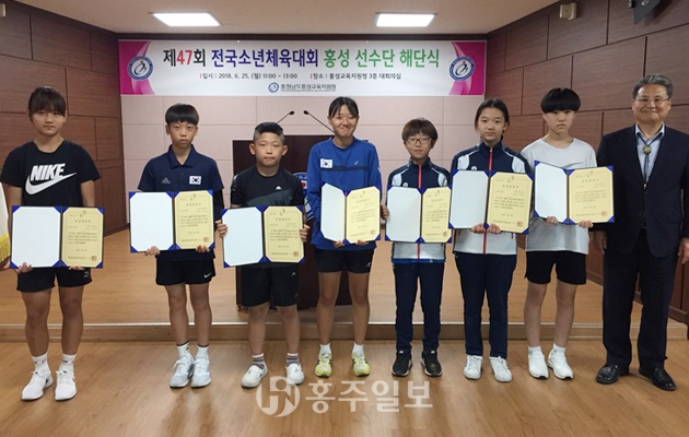홍성교육지원청(교육장 우길동)은 지난 5월 26일부터 나흘간 충북에서 열린 제47회 전국소년체육대회에서 금메달 3, 은메달 3, 동메달 2의 우수한 성적을 일군 홍성군 선수단을 격려하기 위한 해단식을 지난달 26일 개최했다.<사진>