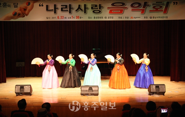 홍성문화원(원장 유환동)과 충남서부보훈지청(지청장 박종덕)은 28일 오후 7시 30분에 문화원 공연장에서 ‘보훈향기 나라사랑 음악회’를 개최한다. 호국보훈의 달을 맞아 국가유공자에 대한 감사의 마음을 가지는 문화공연을 준비했다. 저작권자 © 홍주일보 무단전재 및 재배포 금지 홍주일보 다른기사 보기 페이스북 카카오톡 URL복사 기사공유하기