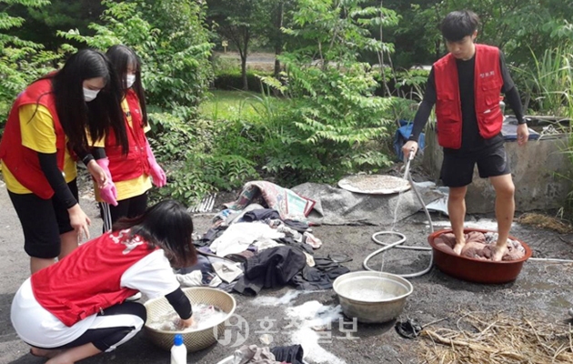 홍성군청소년자원봉사단 청로회(회장 이철이) 학생들이 지난 23일 월산리에 위치한 주택에서 독거노인 봉사 활동을 펼쳤다.<사진> 이 날 봉사는 집안 청소, 빨래하기, 분리수거하기, 어르신 목욕시켜 드리는 등 여러 가지 활동을 했다.