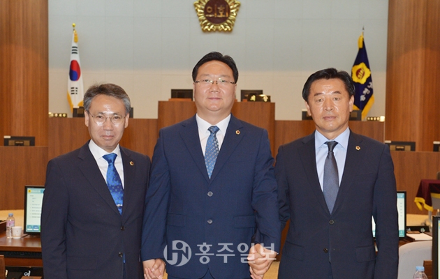 한편 의장에는 3선의 유병국(천안10·더불어민주당) 의원이 당선됐다. 유 신임의장은 재적인원 42명이 출석한 선거에서 41표를 획득, 전반기 대의기관을 이끌게 됐다. 또 이종화 제2부의장과 함께 쌍두마차 역할을 할 제1부의장에는 재선의 홍재표 의원(태안1·더불어민주당)이 당선됐다. 홍재표 부의장은 재적 42명 중 40표를 얻었다.