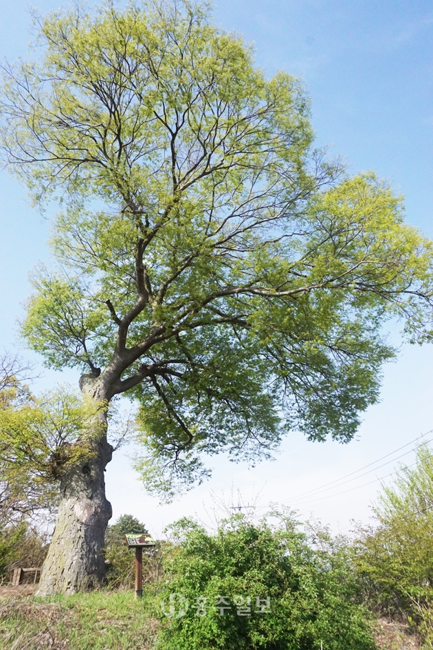 은하면 학산리 거산마을회관 바로 뒤편 323번지에 위치한 수령 200여 년으로 추정되는 이 느티나무는 1982년 보호수(지정번호 8-12-7-6-302)로 지정된 정자목이다. 나무 높이는 약 15m이고 나무 둘레는 280cm가량이다. 지난 2003년 태풍 ‘매미’로 인해 큰 가지가 부러진 흔적이 남아있지만 마을 주민들의 꾸준히 관리 덕분에 상태는 양호하다. 주변이 돌로 꾸며져 있는데, 한 주민에 의하면 “20여 년 전 마을 부녀회원들이 직접 주변의 큰 돌을 들고 옮겨 직접 꾸몄다”며 “이 곳으로 시집와 힘들 때마다 이 나무 뒤에 숨어 눈물을 훔쳤다”고 회상했다. 그 당시 설치된 평상이 남아있지만 매우 노후 돼 보수가 필요하다.