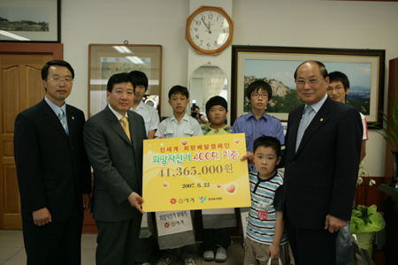 홍성군청 군수실에서는 지난 22일 신세계 그룹 임직원 및 한국복지재단, 관내 학생 등 20여명이 참석한 가운데 자전거 기증 및 결연식을 가졌다.