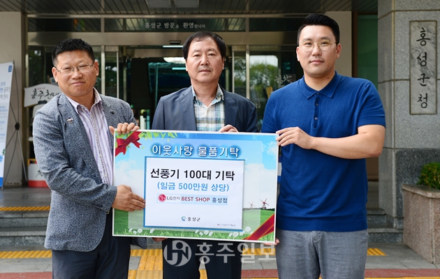 LG베스트샵 홍성점(대표 박재준)은 지난 주 어려운 이웃들을 위해 선풍기 100대를 기부하며 500만원 상당의 금액을 기탁했다. 박재준 대표는 유니세프와 사랑의 열매 공동모금회에 꾸준한 기부를 실천해오며 지역민의 사랑을 사회에 환원하고 있다. 저작권자 © 홍주일보 무단전재 및 재배포 금지 홍주일보 다른기사 보기 페이스북 카카오톡 URL복사 기사공유하기