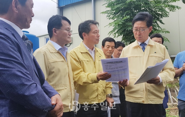 조소행 본부장은 양승조 충남도지사, 황선봉 예산군수와 함께 예산군 오가면 과수농가를 찾아 배수로 정비상태, 가지 지주시설 고정 여부, 방풍림 및 방풍망 설치 상태 등을 점검했다.