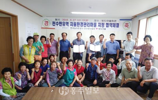 한국농어촌공사 천수만사업단(단장 민흥기)은 지난 27일 보령시 천북면 낙동4리 빙도마을과 천수만유역 자율환경관리를 위한 기본협약서를 체결했다.<사진>