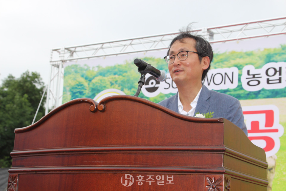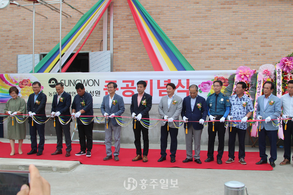 농업회사법인 ㈜성우(대표이사 이도헌)는 지난 10일 결성면 성남리 들판 가운데 돼지 1만 마리 사육이 가능한 제2농장을 지어 ‘농업회사법인 성원㈜’을 출범시켰다. 이 날 현장에서 주요 내빈과 주민 300여 명을 초청한 가운데 거행된 준공기념식에서 이도헌 대표이사는 인사말을 통해 “저희 농장을 마을 공동체의 일원으로 받아주신 중리와 신리 마을 어르신들에게 진심으로 감사드린다”며 지난 2년간 많은 어려움 속에서 준공식을 갖기까지 적극 협조해준 주민들에게 거듭 감사를 표했다.