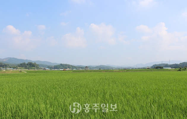 어느새 한여름이다. 연일 계속되는 폭염에도 홍동면 금평리 넓은 들판에서는 벼의 색이 한층 짙은 녹색으로 변했다. 미세먼지 걱정 따위는 잠시 치워두고 파란 하늘과 녹색의 논을 바라보며 귀를 기울인다. 성급한 귀뚜라미는 벌써 밤마다 울어대고, 자신의 존재를 밝히듯 개구리도 개굴개굴 울어댄다. 농부의 속이 타는 줄도 모르고 말이다. 뒷짐을 지고 논 주변을 서성거리는 아버지의 발소리가 어디선가 들리는 듯 하다.