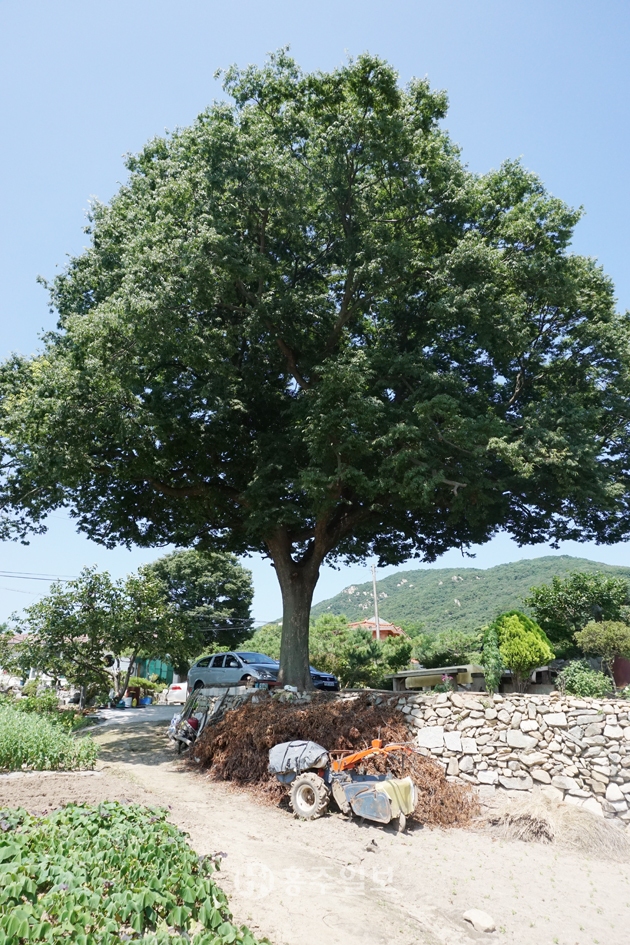 구항면 오봉리 216번지에 위치한 수령 200여년으로 추정되는 느티나무는 1982년 보호수(지정번호 8-12-11-1-319)로 지정된 정자목이다. 나무높이는 약 17m이고 나무둘레는 260cm가량으로 사방으로 가지가 뻗어있다. 4년 전 어머니를 모시기 위해 내려온 소유주가 직접 주변정리와 화단조성을 했다. 주변에 있는 산 정상에서나 볼 법한 암석들과 함께 보호수가 아주 조화롭게 조경돼 있어 쉼터로서 구색을 갖추고 있다. 하지만 20여 년 전 함석으로 제작돼 철사로 나무에 매달아 두었던 안내판이 없어진 후 안내판이 설치된 적이 없으며 나무 아래 2개의 간이 평상이 있지만 상태가 좋지 않아 보수가 필요하다.