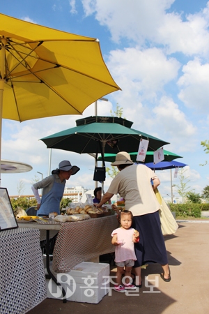 강소농이 힘을 합쳐 소비자와 직접 만나는 시간을 가졌다. 홍성군농업기술센터 홍성큐팜 가입 농가 20여 농가는 지난 23일 충남도서관 옆 홍예공원에서 소비자들과의 벙개모임을 가졌다. 마침 이 날은 홍성큐팜카페 100일이 되는 날이기도 했다. 카페 가입 농가는 30여 농가인데 이 날 벙개모임에는 한결농장, 해피팜스토리, 문당쌀이야기, 해마루블루베리, 착한농부양여사네 등 20여 농가가 참여했다.