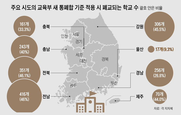 소규모학교 통폐합, 농어촌 황폐화·가속화 등 부작용이 만만찮아