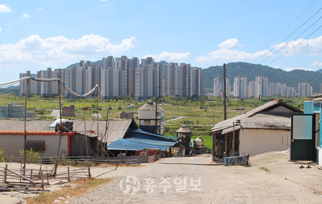 홍북읍 대동리 내포신도시와 경계선을 접한 곳에서 돼지를 사육하는 김아무개(45) 씨는 요즘 죽을 맛이다. 신도시 주민들을 위해 축분냄새가 나지 않도록 나름대로 무척 애를 쓰는데도 잦은 민원 때문에 고통스러운 나날을 보내고 있다. 민원이 제기되면 군청의 담당공무원이 달려와 주의를 주는데 늘 같은 소리다. 규정대로 축분냄새를 저감할 수 있도록 다그치는 것인데 물론 김 씨도 그렇게 한다고 반복해서 대답한다. 군에서 지원해주는 악취저감제를 쓰면서 늘 사육장을 청결하게 하고 있지만 그래도 짐승의 냄새는 나기 마련이다. 특히 요즘같이 무더운 날씨에 저녁시간 창문을 열면 냄새 때문에 아파트 주민들이 힘든 것도 안다. 그러나 가축을 함부로 키웠던 예전만큼 축산악취는 심한 편이 아니라고 김 씨는 자신한다.