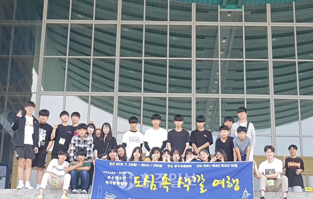 홍성군청소년수련관(관장 이원영)은 지난달 23일~25일 홍성군내 우수청소년 중학생 30명과 경기 및 서울일원으로 역사문화탐방을 진행했다. 이번 탐방에서 문화체험과 10전투비행단의 역사 등에 대해 알아보는 시간을 가졌다. 저작권자 © 홍주일보 무단전재 및 재배포 금지 홍주일보 다른기사 보기 페이스북 카카오톡 URL복사 기사공유하기