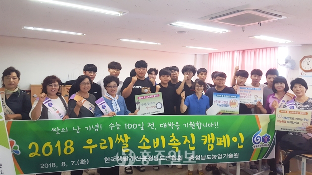 충남도 농업기술원이 오는 18일 쌀의 날과 수능 100일을 앞두고 지난 6일부터 각 시·군 고등학생 등 5000명에게 쌀떡과 빵, 쿠키 등을 전달하는 쌀 소비촉진 릴레이 운동을 개최한다.<사진>
