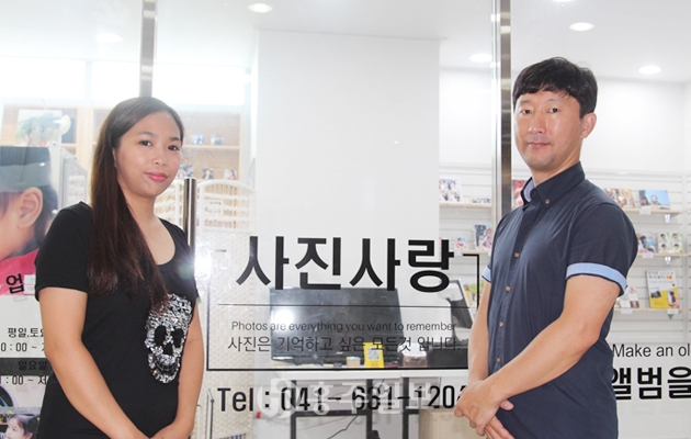 홍성읍 롯데마트 4층에서 ‘사진사랑’을 운영하는 이한경(46) 씨, 그의 가게에 진열된 사진의 모델은 거의 모두 자신의 가족이다. 아내 이하나(29) 씨를 비롯해 어린 3남매까지 정말 한경 씨가 모델로 삼을 만큼 모두 인물이 좋다. 요즘 전 국민이 사진사여서 사진관이 어려울 것 같은데 한경 씨는 나름대로 틈새시장을 개발했다. 스마트폰으로 찍은 사진을 편집해주고, 오래 전 옛날 퇴색한 사진을 가져오면 새롭게 만들어 주기도 하며, 사진으로 선물용 액자를 만들기도 한다.