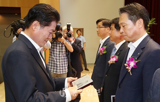충남농협 조소행 본부장이 지난 3일 농협중앙회 대강당에서 김병원 농협중앙회장으로부터 특별사업추진 능력을 인정받아 자랑스러운 농협인상을 수상했다. 특별사업추진부문은 농협택배사업으로 농촌지역 신속한 택배기능을 확대하는 사업이다. 저작권자 © 홍주일보 무단전재 및 재배포 금지 홍주일보 다른기사 보기 페이스북 카카오톡 URL복사 기사공유하기