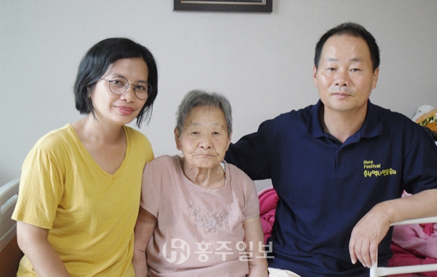 “올여름은 너무 더워서 나가지 못했어요. 이제 시원한 가을을 맞아 산책할 수 있어서 아이들과 어머니도 좋아하셨습니다. 공원이 너무 잘 조성돼 있어서 만족합니다.” 메이린 씨의 남편 박순철(53) 씨의 말이다. 순철 씨는 홍성군에서 환경미화원으로 일한다. 주중에 순철 씨 부부가 직장에 나가고 아이들마저 학교에 가면 할머니 혼자 남아 괜찮을까? 다행히 할머니는 정신적으로 매우 건강한 데다 대소변은 보조용기로 해결할 수 있다.