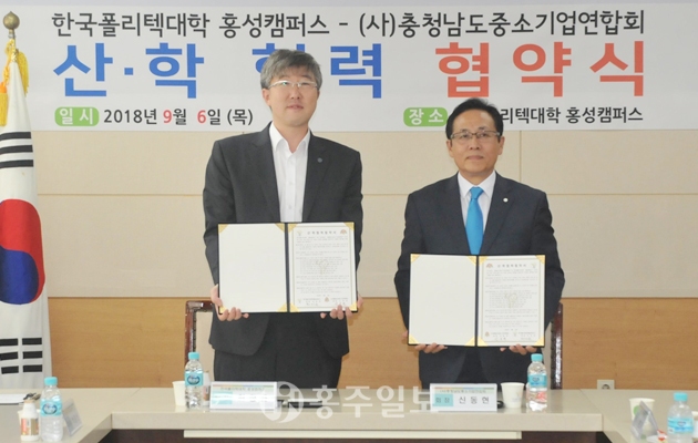한국폴리텍대학 홍성캠퍼스(학장 최장윤)는 지난 6일 본교 상록관에서 (사)충청남도중소기업연합회(회장 신동현)와 취업연계 맞춤형 우수인력 양성 및 일자리 지원과 상호 공동발전을 위한 산학협력 MOU를 체결했다.<사진>