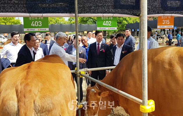 농협 충남지역본부(본부장 조소행)는 지난 11일 서천군 금강하구둑 김인전 공원에서 축산농가 3000여 명 등이 참석한 가운데 2018 충남 좋은 가축 선발 대회를 개최했다. 이번 행사는 충남 도내 시군별로 선발된 한우 75두 등 총 105두가 출품됐다. 저작권자 © 홍주일보 무단전재 및 재배포 금지 홍주일보 다른기사 보기 페이스북 카카오톡 URL복사 기사공유하기