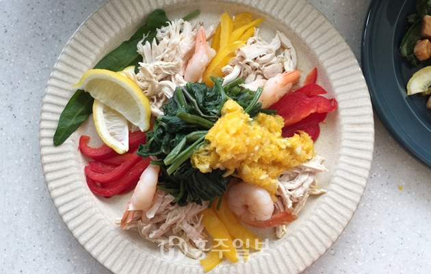한편 갈비 등 고기류의 느끼함을 달래주는 음식으로는 닭가슴살 냉채를 제안했다. 닭가슴살을 끓는 물에 넣어 중불로 삶은 뒤 결대로 찢어 미나리, 대하, 파프리카 등을 넣고 분량의 오렌지소스(오렌지1개, 연겨자2큰술, 식초2큰술, 올리고당1큰술, 설탕1큰술, 다진생강1작은술, 참기름1/2작은술, 다진마늘1큰술)를 넣고 섞어준다.