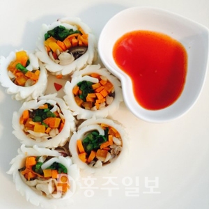 오징어에 각종 채소를 넣은 오징어 채소말이는 오징어를 반으로 갈라 파프리카, 미나리, 당근 등의 채소를 잘게 다져 안에 넣고 전자레인지에 가열해주면 된다. 곁들이는 소스는 고추장, 매실청, 식초, 다진 마늘, 꿀을 넣은 꿀초고추장과 함께 먹으면 된다. 재료와 소스만 준비해 밥솥에 넣기만 하면 되는 닭봉연근조림은 닭봉과 연근, 건표고버섯, 통마늘, 통생강, 양파, 대파 등과 분량의 양념장(간장1/4컵, 맛술1/4컵, 꿀1/4컵, 물1/2컵)을 넣고 버무린 뒤 밥솥에 넣어 취사 버튼만 누르면 된다.