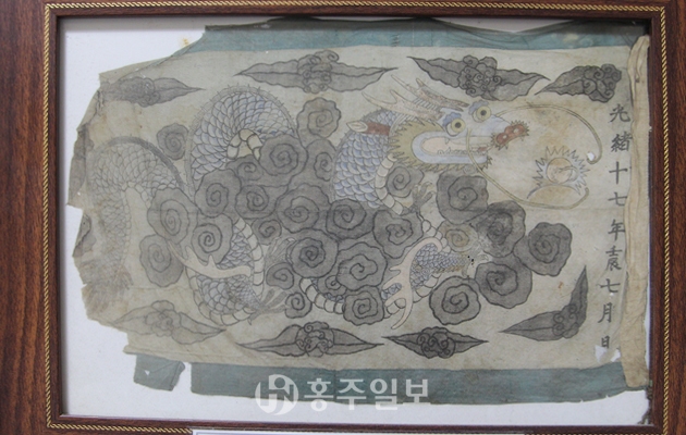 주교에는 약 200년 된 문화재가 있다. 바로 용대기다. 마을회관 앞에는 이에 대해 설명하는 안내판이 세워져 있다. 민속자료 제4호로 지정된 용대기는 가로 320cm, 세로 180cm로 1824년(순조24년) 조선시대에 제작된 것으로 알려졌다. 그 밖에 자세한 설명을 그대로 인용해 본다.