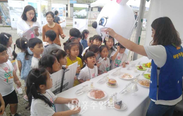 홍성군 어린이급식관리지원센터(센터장 전예숙)가 지난 14일 홍성역사인물축제에 방문한 어린이 200여 명을 대상으로 ‘지방을 떼어내라’와 ‘당도 내리고, 건강 올리고’ 행사를 홍주성 일원에서 진행했다.<사진>