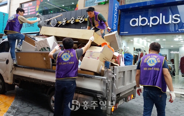 홍주라이온스클럽(회장 김병태)은 지난 14일 명동상가 일대를 돌며 환경미화 거리캠페인을 실시했다. 회원들이 직접 참여한 이번 봉사활동은 비가 오는 궂은 날씨에도 불구하고 늦은 시간까지 청소봉사를 실시됐다. 저작권자 © 홍주일보 무단전재 및 재배포 금지 홍주일보 다른기사 보기 페이스북 카카오톡 URL복사 기사공유하기
